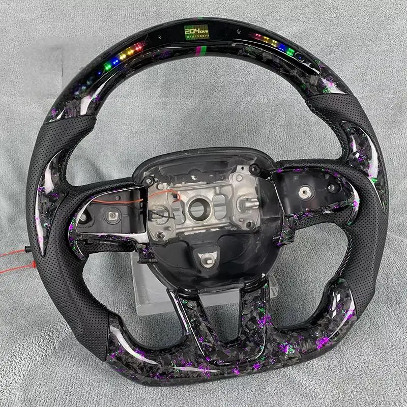 SPECIFICATIONS Car Fitment: Dodge Car model: Dodge Charger Challenger SRT 2015-UP Design Style: Sporty Carbon Fiber Function: Retain heating tape plug Leather Color: Can Be customized Materail: Perforated Leather+Carbon Fiber Material: Carbon Fiber Name: LED Carbon Fiber Steerng Wheel Product Name: Carbon Fiber Patterned Steering Wheel for Dodge Shape: D Shape/Flat Shape/F1 Stitch /Stripe …